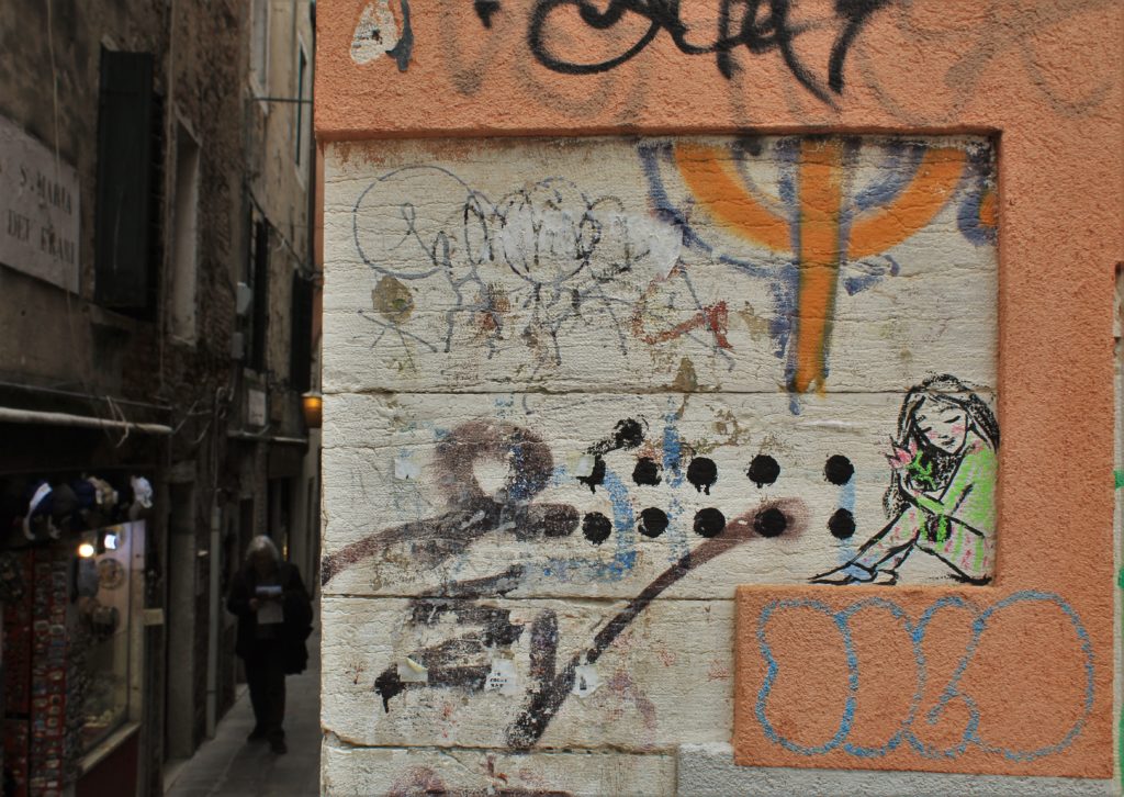 Mentre i cacciatori di arte giungevano per scoprire le novità proposte dalla Biennale, noi artisti considerati “non” convenzionali disseminavamo di notte le nostre opere per la città; opere pubbliche non commissionate, alla portata di tutti.