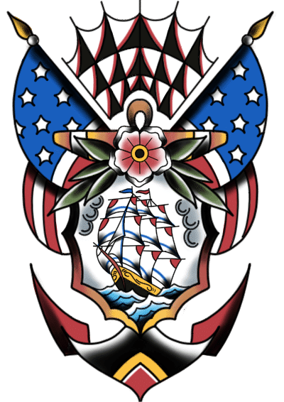 American galleon and flags
