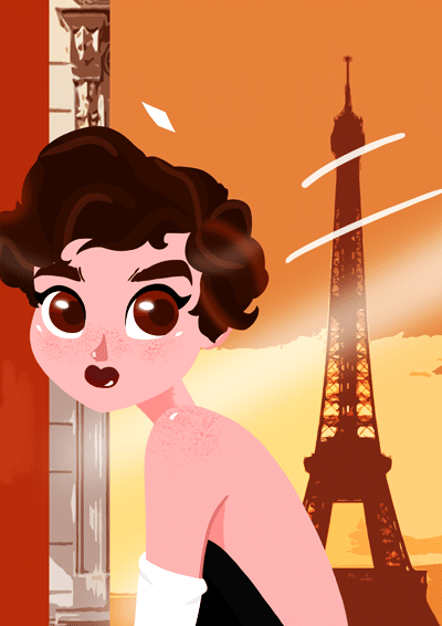 Work thinking of the romantic and sensual atmosphere around Paris, in addition to the finesse and beauty of Parisian women. Using the color palettes in reddish, orange and yellow tones, together with the contrast of the female character.