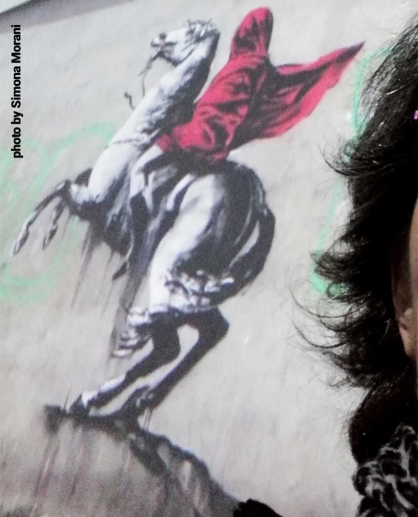 Il vocabolario Treccani a proposito dell’etimologia della parola “provocare” parla di derivazione dal latino “pro”= fuori + “vocare”= chiamare, dunque “chiamare fuori” e in questo senso Banksy è perfetto: ti proietta fuori da una rassicurante visuale comune. Ti mette di fronte, senza filtri, al fatto che esista una realtà politicamente scorretta. Dunque non hai più l’alibi del “ma io pensavo…”, “ma io sapevo…”. Niente! Non ci sono scuse, lui te lo dice ed ora lo sai.